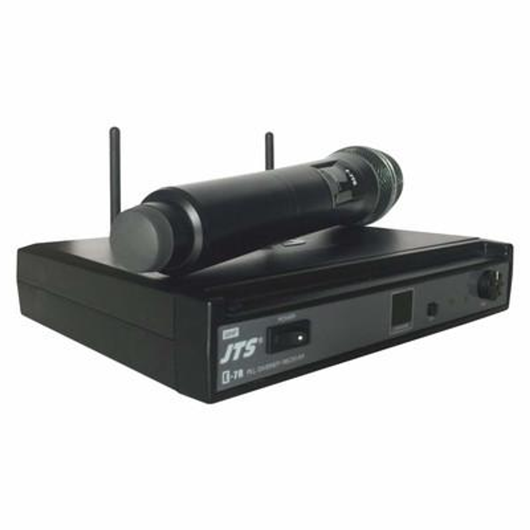El modelo E7R/E7TH de JTS es un sistema inalámbrico de micrófono de mano, que se destaca por su facilidad para usar. Es ideal para presentadores, músicos, instructores o todo aquel que necesite movimiento sin restricciones sobre el escenario. Este modelo de JTS es preferido por muchos por su comodidad y la calidad del sonido. El sistema de micrófono inalámbrico E7R/E7TH tiene el último diseño de circuito inalámbrico. Proporciona 16 canales seleccionables. Enlace estable de RF y buen rendimiento de audio están asegurados. La pantalla de 7 segmentos facilita la operación. El sistema es de precio muy asequible.