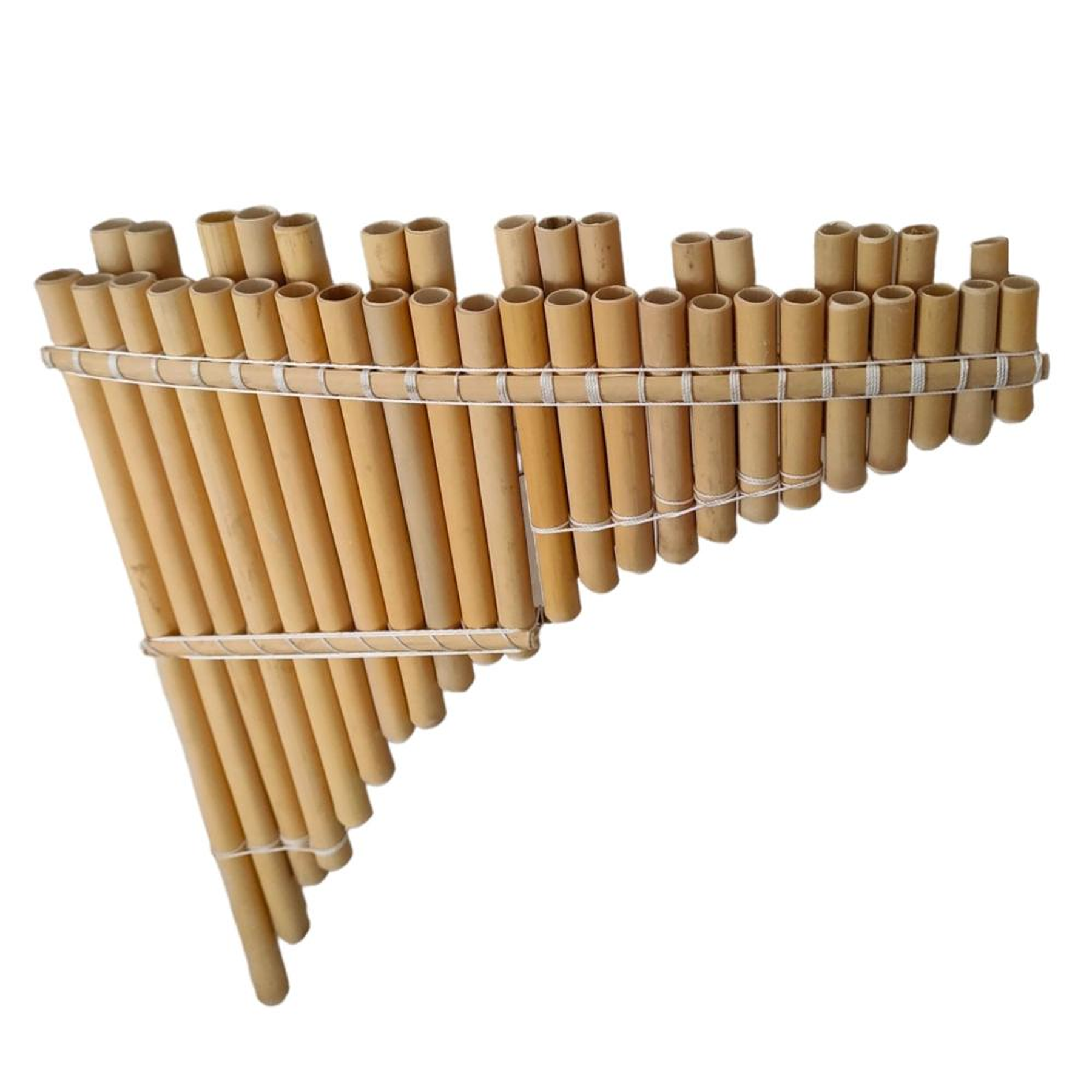 Las zampoñas profesionales de escala cromática, fabricadas artesanalmente con caña natural, son una maravillosa elección para músicos que buscan calidad en su sonido, versatilidad y universalidad en su ejecución. Estas zampoñas de 3 octavas, con sus 39 notas, ofrecen una amplia gama tonal para explorar y expresar la riqueza de la música folklórica, popular latinoamericana, barroca andina, clásica o cualquier tipo de fusión. Fabricadas con maestría, estas zampoñas capturan la esencia de la tradición ancestral andino de los instrumentos de caña. Las zampoñas o sikus tradicionales ordenan sus notas de manera ascendente sin diferenciar bemoles/sostenidos, sino como una escala uniforme distribuido en una, dos o incluso tres filas parejas. La disposición de las notas de esta zampoña cromática es en dos filas de orden tipo piano, donde las notas bemoles y sostenidos se encuentran en la segunda fila, favoreciendo la versatilidad de este instrumento aerófono para ejecutarse con cualquier estilo de música en una amplia gama universal, y además que permite una ejecución precisa y cómoda. Ya sea que estés interpretando música folclórica de tradición andina, folclore latinoamericano o explorando nuevos fusiones de estilos musicales, estas zampoñas profesionales de escala cromática favorece la ejecutabilidad con precisión y comodidad. te llevarán en un viaje sonoro lleno de pasión y autenticidad. Descubre la belleza y la magia de la música latinoamericana con estos instrumentos excepcionales.